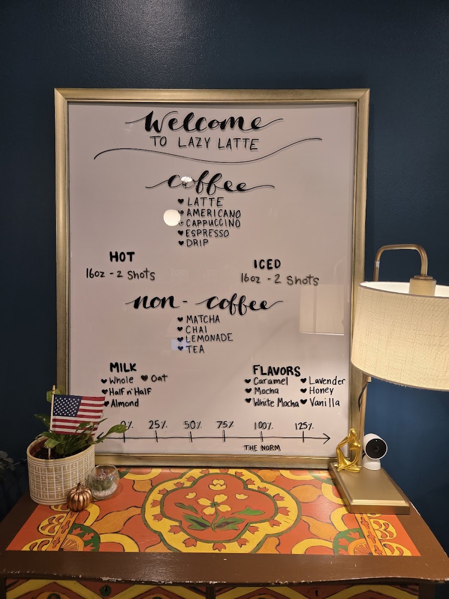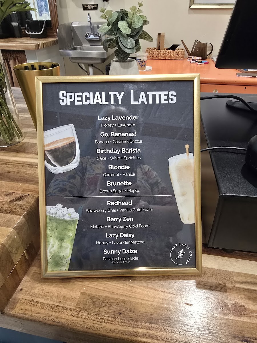 Lazy Latte Coffee Menu